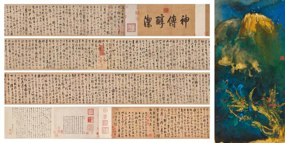 2025年中國嘉德春拍,張大千潑彩巨制《日蝕》以人民幣7,935萬元(約新台幣3.3億元)成交;在 2025 年4月香港蘇富比,饒介《草書韓愈柳宗元文》最終成交價為2億5,010萬港幣(約新台幣10.6億元)。